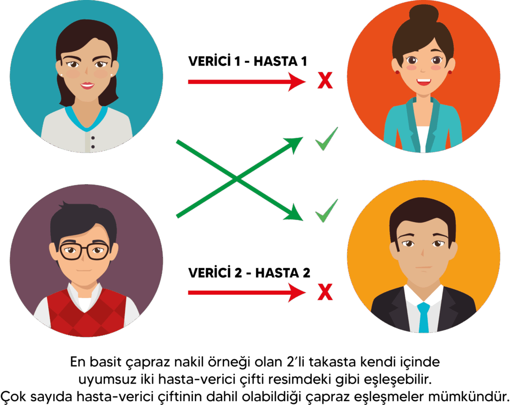 Enstitümüzde eş zamanli olarak yedi karaciğer nakli yapabilecek personel ve teknik donanım bulunmaktadır. Bu demektir ki, gerektiği zaman Enstitümüzde 7’li çapraz nakile kadar çoklu çapraz nakil yapılabilmektedir. Eş zamanlı nakillerde verici ve hasta eşleşmeleri, Haziran 2022 de uygulamaya geçen “Banu Bedestenci Sönmez Karaciğer Çapraz Nakil Sistemi” ile yapılmaktadır. Bu sistem, mümkün olan en küçük çapraz nakilleri kullanarak, en fazla hastaya en uygun nakilleri sağlama prensibi üzerine kurulmuştur. Bu prensip eşliğinde Enstitümüzün başarıları: